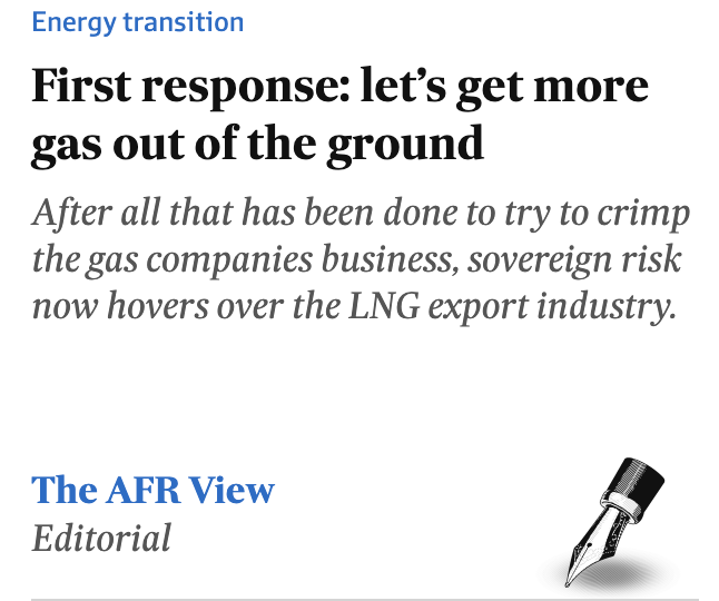Indeed “their associates” in the Australian Financial Review are sobbing today that the poor little multinationals are being demonised and we need to frack up some more farmland.