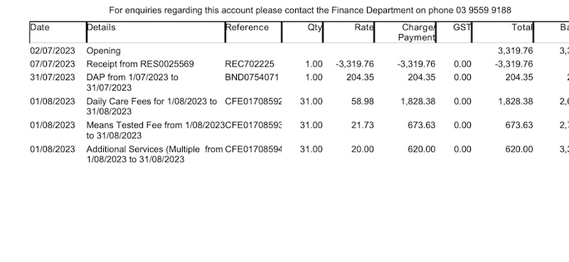 Each month Arcare provided an invoice. This invoice included ‘daily care fees’, ‘means tested fees’ and ‘additional services’. However, these ‘additional services’ were not itemised – so there was no way of knowing which of these ‘additional services’ Mr or Mrs Jones had used. Did they have wine for dinner or attend an exercise class?