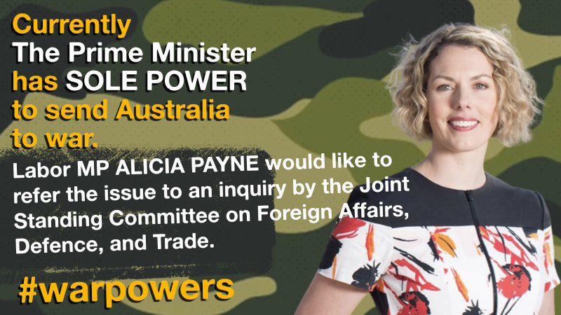 Unlike many of her colleagues, Labor MP Alicia Payne provided a lengthy response to MWM‘s ongoing survey of parliamentary attitudes to war powers reform: