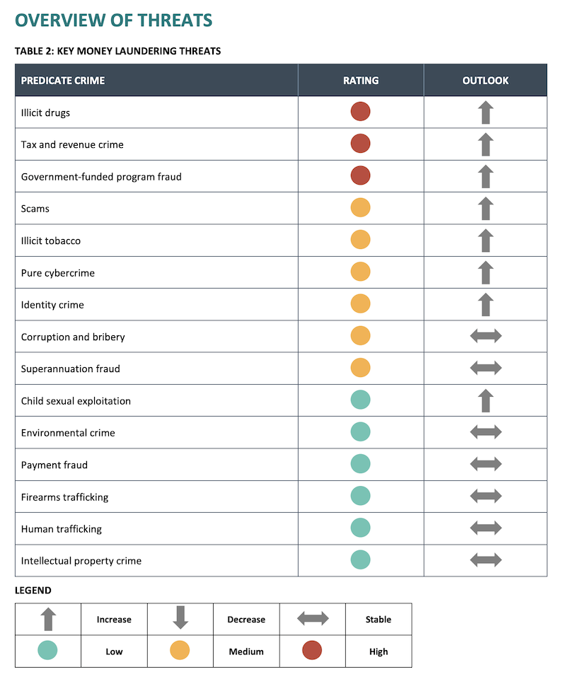 “Underpinning many money laundering activities in Australia is opacity, anonymity and a lack of transactional visibility. The use of cash, trusts, identity crime, mule accounts and third-party transactions that obscure identity, beneficial ownership or financial flows continues to be a mainstay of money laundering,” says the report.
