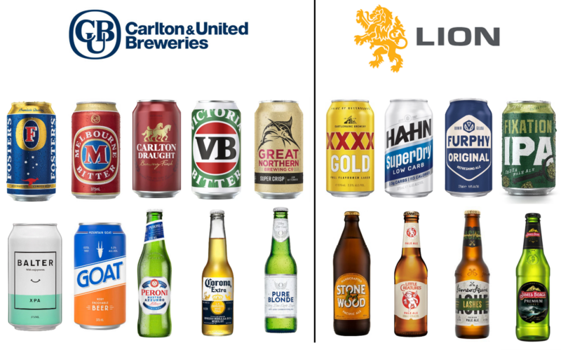 But here, too, before the beer even leaves the factory floor, independents face another duopoly, as only two companies in Australia make printed aluminium cans: Visy and Orora.