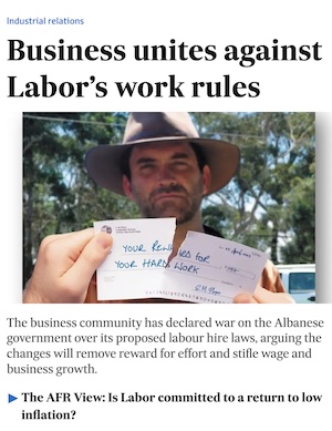 The Nine and Murdoch media declared war was coming this morning, a “full-scale IR war” by business against the government’s “Same Job, Same Pay” labor hire laws. What’s the scam?