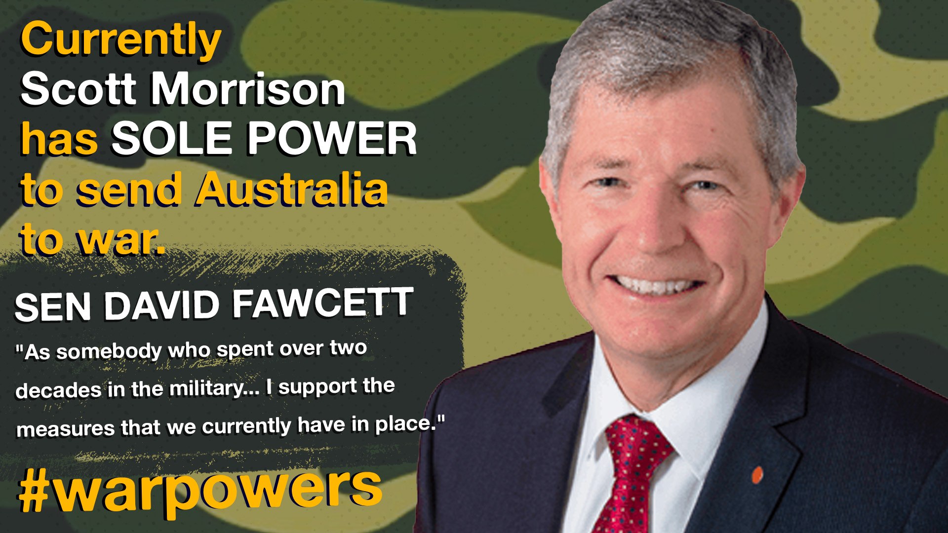 Liberal Senator David Fawcett supports the present arrangements and referred us to his contribution to a debate of Greens’ Senator Jordon Steele-John’s war powers reform bill in August 2021.