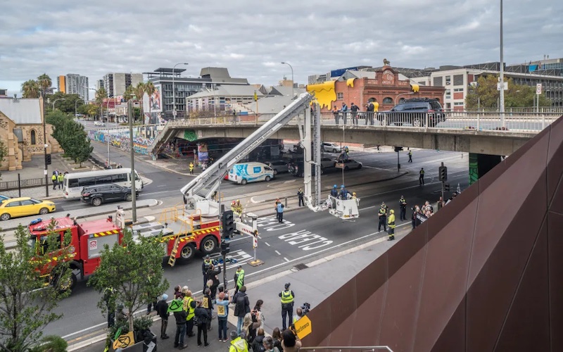 The Summary Offences (Obstruction of Public Places) Amendment Bill 2023 was introduced into the House Assembly by Premier Peter Malinauskas the day after Extinction Rebellion protests were staged around the Australian Petroleum and Exploration Association (APPEA) annual conference on May 17. The most dramatic of these protests was staged by 69 year old Meme Thorne who abseiled off a city bridge causing delays and traffic to be diverted.