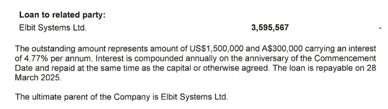 What is particularly unusual however are the government grants and the related party loan. Why would Elbit Australia be lending money to its Nasdaq listed parent company in Israel? And why at an interest rate just marginally above the Reserve Bank cash rate at 4.35%?