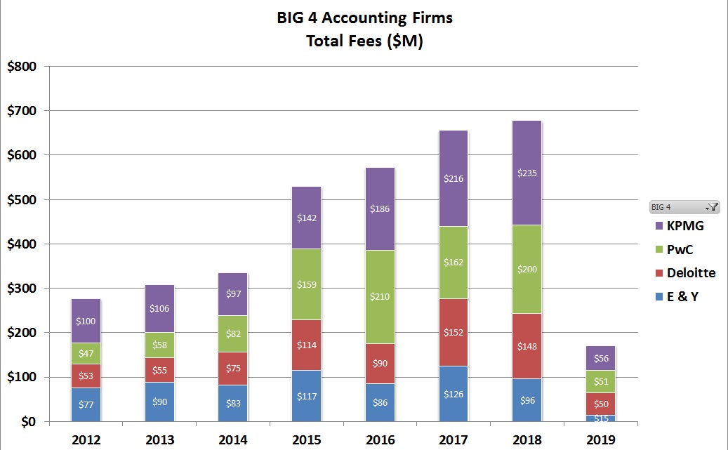 “Fee increases from 2015 to 2018 are such that the total fees for 2018 are double that of 2014, that is $330 million over four years, a 100 per cent increase in Big Four billing for services provided to the Australian Government,” says Bean.