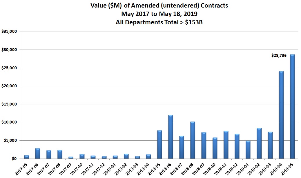 “And then, with the election announced in April, an explosion in untendered contracts has occurred with from April 1 to May 18, 2019 – $50 billion in untendered contracts being amended.”