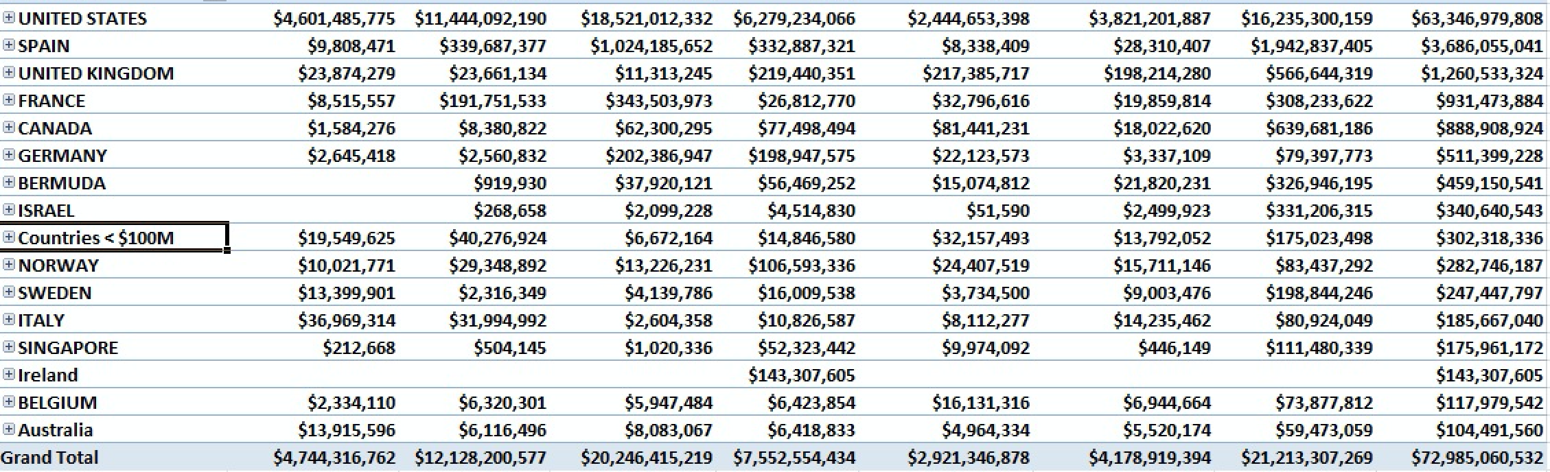 A good deal of this $73 billion identified by Greg Bean has also been struck with companies who list foreign business numbers.