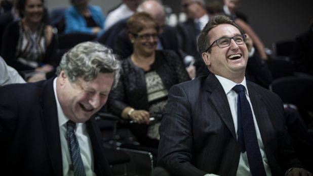 Chevron’s vice president and general tax counsel, Sandy Macfarlane (left) and Chevron managing director Australia Roy Krzywosinski. Photo: Edwina Pickles