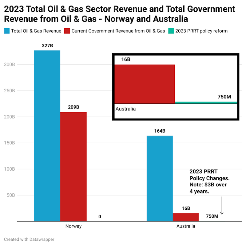 Check this chart by Daniel Bleakley comparing Norway to Australia and including the latest impact of the PRRT fiddling. To paraphrase Crocodile Dundee: “That’s not a tax … *this* is a tax.