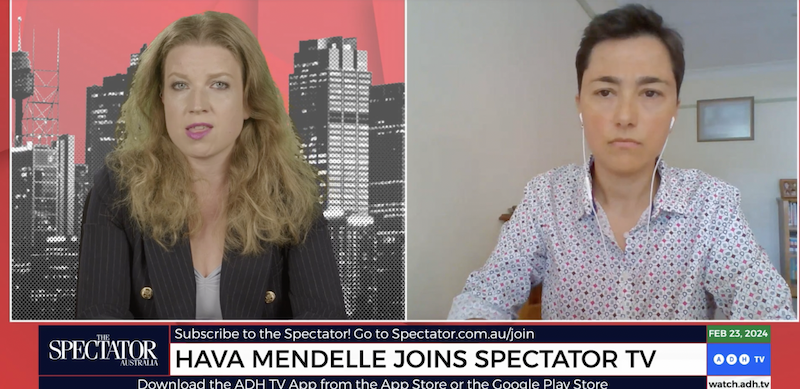 Hava Mendelle declined to be interviewed by MWM – and to her photo being taken for in article for the Australian. However she did appear on a show for “cultural warriors” on Spectator TV in February 2024. Spectator TV has a regular show on the right wing online channel ADV begun by Alan Jones after he was sacked by Sky TV and which is backed financially by James Packer.
