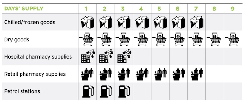 Food will quickly run out. We have just over a week of dry good consumption available at our supermarkets and about a week for chilled and frozen foods.