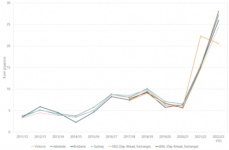 But the gas lobby has convinced governments that NSW and Victoria need to drill more gas, we need to frack the Northern Territory, frack everywhere because more gas supply means lower prices and because NSW and Victoria should not be “importing” gas from Queensland and Western Australia. We can’t possibly introduce a “domestic reservation policy” even though it’s working in WA.