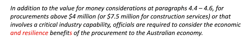 The Commonwealth Procurement Rules would need to be altered. Changes could be simple, as illustrated in red for s4.7 of the rules:
