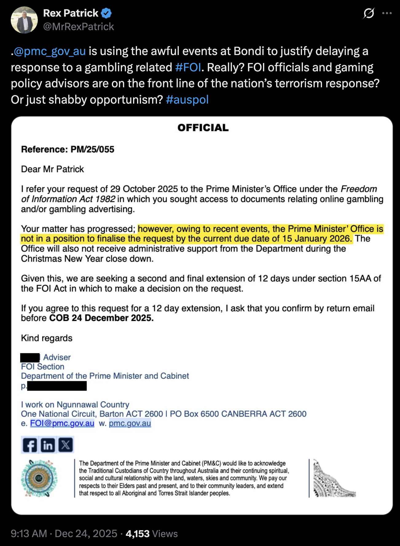 Will 2026 see change to Gambling Advertising in Australia? The answer has to be ‘No’ if new Government Freedom of Information responses to Rex Patrick are anything to go by.