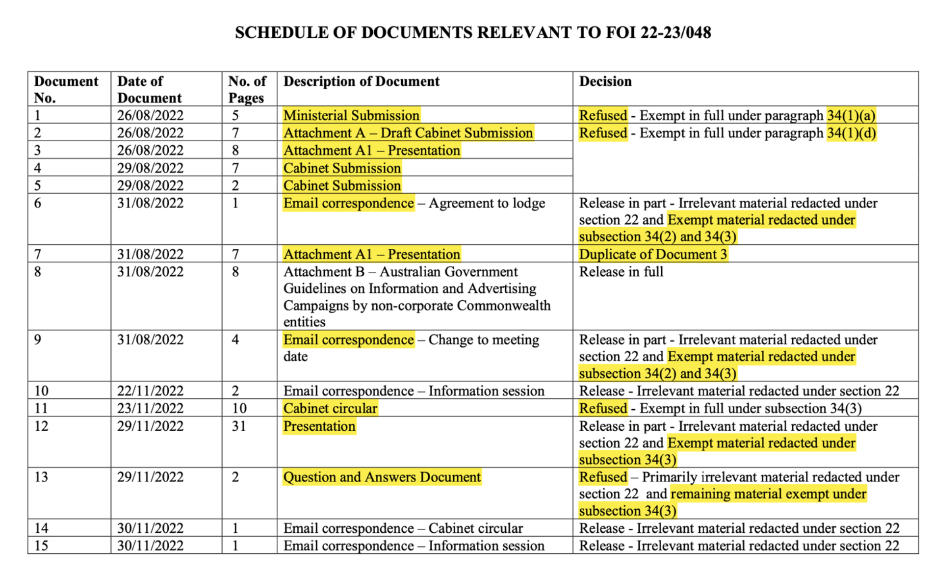 I know this because in April 2023 I requested Independent Communications Committee documents using FOI and got a response littered with (FOI Act Section 34) Cabinet exemption claims.