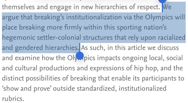 The detractors were many. “I’m starting to get obsessed with how this lady scammed the Australian government to pay for her French holiday and all she had to do is pretend to breakdance” said one social media post. To which another responded by posting this excerpt from Gunn’s academic work: