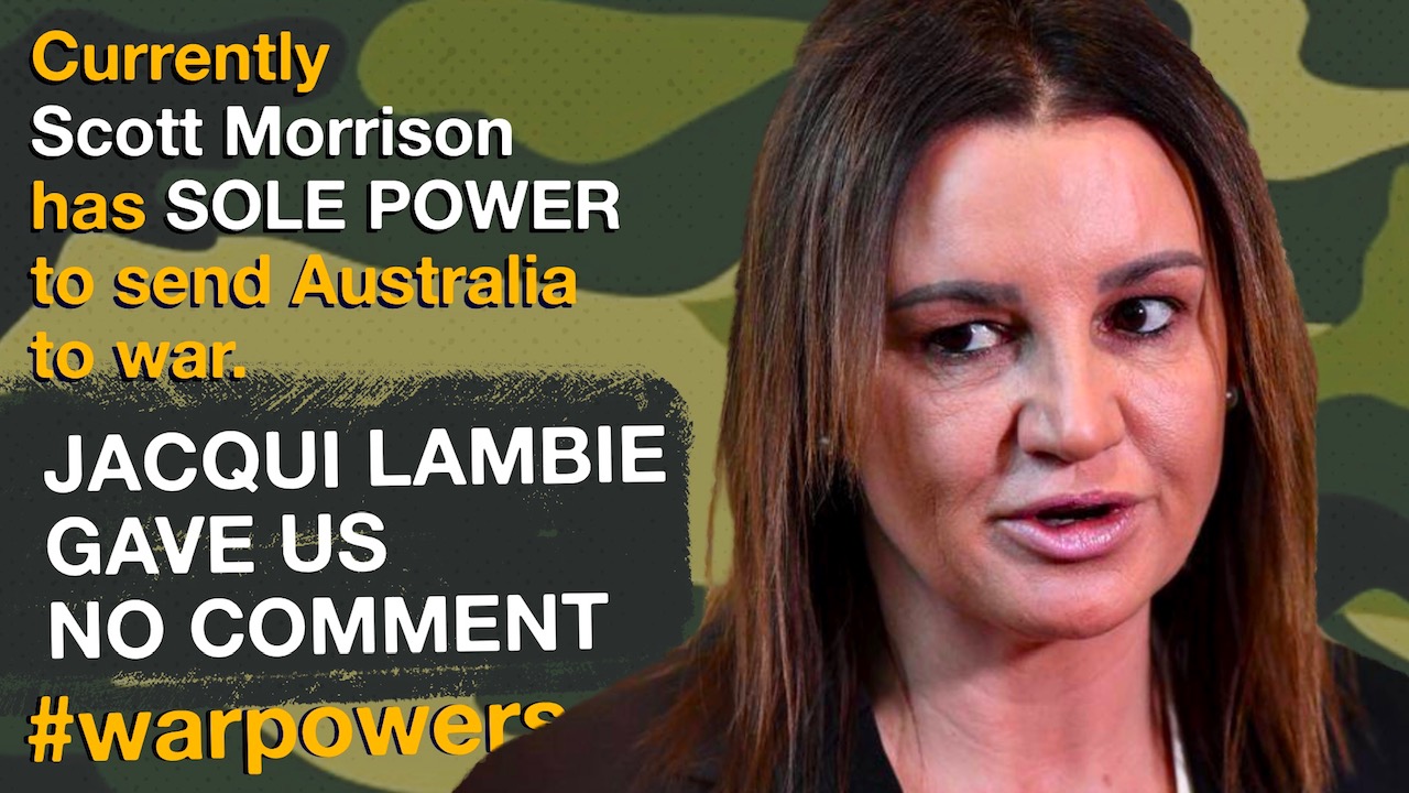 When asked if she believed Parliamentary approval should be required before Australian troops are sent into armed conflict abroad, Federal Independent Senator for Tasmania, Jacqui Lambie, failed to provide any response despite our multiple attempts to contact her regarding the inquiry. However, the Defence section of the Jacqui Lambie Network’s website lists war powers reform as part of her policy platform.