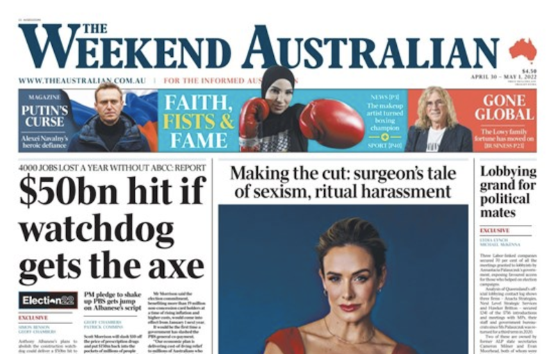 And talking about the latter, Rupert Murdoch’s front pages this weekend are splashing with dubious numbers in a report by government consultants and donors EY, commissioned by property lobby Master Builders, claiming that cutting red tape – that is, abolishing the Australian Building and Construction Commission (ABCC) – will cost us $50bn.