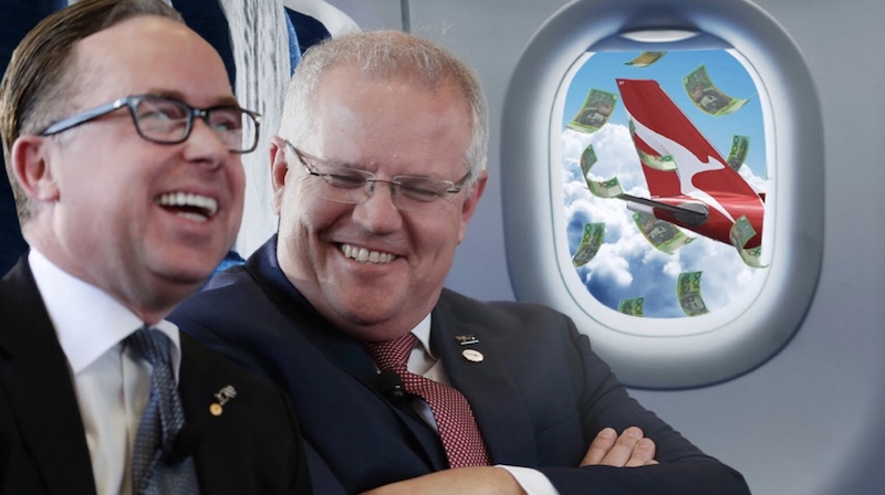 But the biggest scam came last week when Qantas handed down its profit results and declared a $400m share buy-back. The board apparently deems it okay for Alan Joyce and co to spend the airline’s excess cash – publicly subsidised cash – not on disaffected workers, not on tax, not paying back subsidies, not on services for customers but on … drumroll, buying its own shares in order to prop up the stock price and lift executive bonuses.