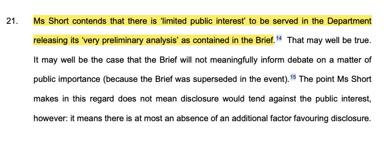 After all, in trying to resist release of the 2023 they told the Tribunal that a preliminary review would be of little public interest. Surely that means the final brief would be of significant public interest.