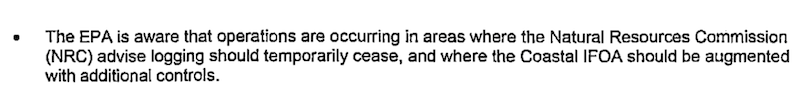 Following the bushfires of 2019-2020, the EPA was made aware that logging was being carried out by Forestry Corporation in areas of state forests in spite of a Natural Resources Commission cabinet in confidence report dated June 2021, which advised that logging should temporarily cease and additional controls be augmented.