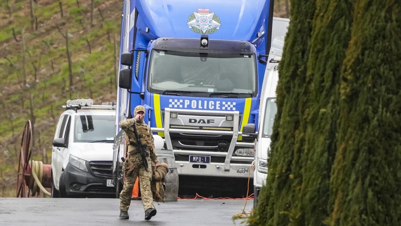 Feathertop Winery continues to be the staging area for police, with nearly a dozen police cars gathering along the road outside the property on Thursday afternoon.