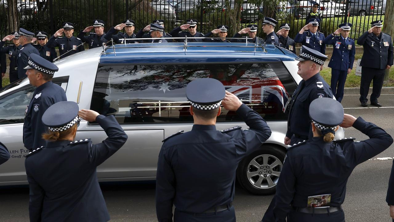 Uniformed police formed a guard of honour stretching hundreds of metres for the hearse carrying the officer’s coffin.