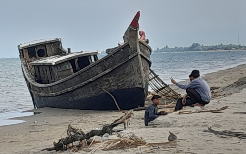 The 20-metre timber freighter that brought Aziz and his fellow hopefuls to the beach at Sigli about 120 km south of Banda Aceh has already been stripped of its engine and other parts by local chancers. Relations with villagers seemed good, with some bringing food and clothes.