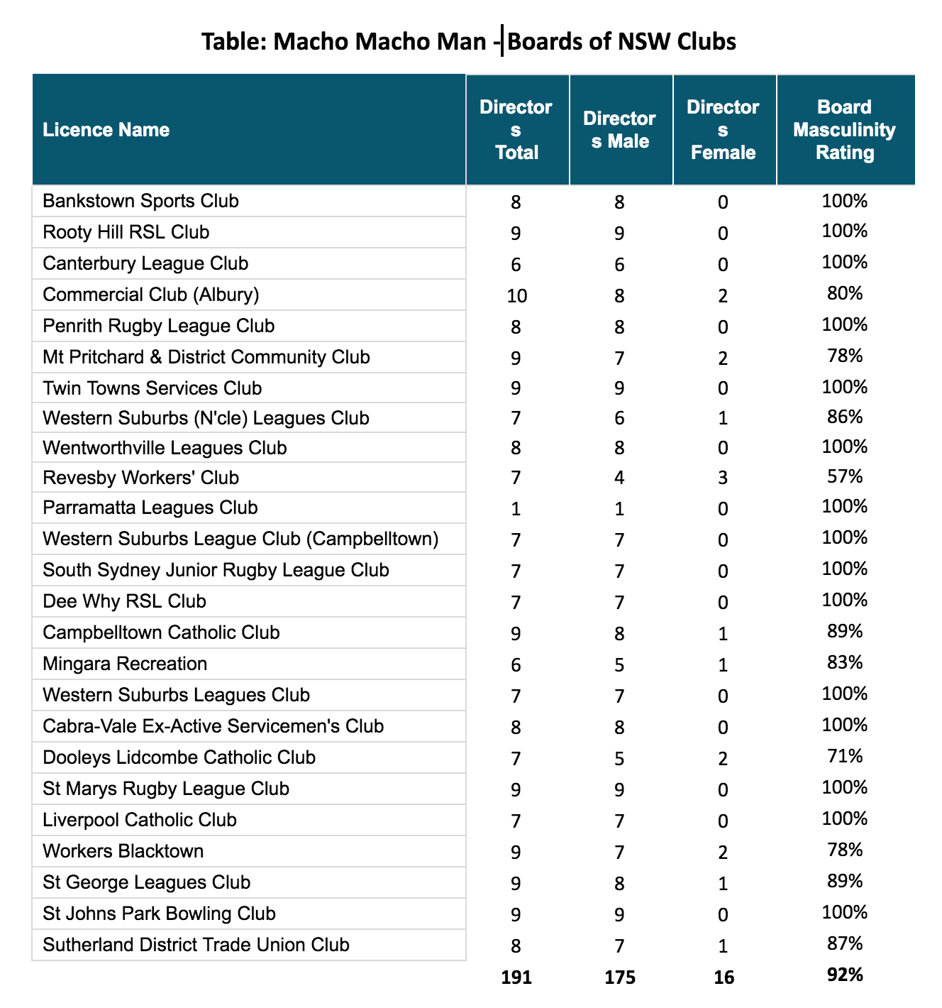 However, the likes of Mingara – which used to have 9 directors but now has 6, Dooleys’ Catholic Club – was 9, now 6, and Canterbury League Club, from 8 to 6 – indicate cabal-like characteristics.