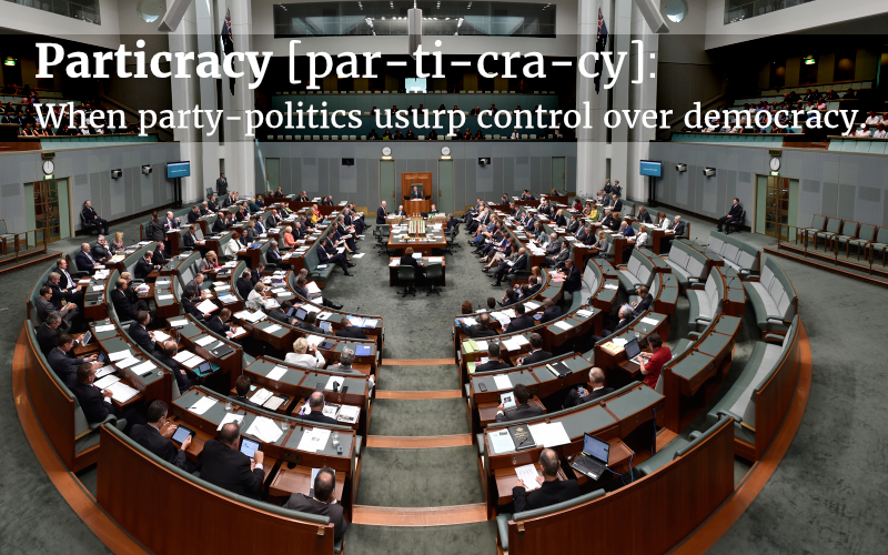 The particracy has taken control, we live in a democracy in name only. We are run by a political elite whose myopia is reinforced by donors, big business and the sectarian interests who makes the most noise, with mainstream media complicit in the deceit.