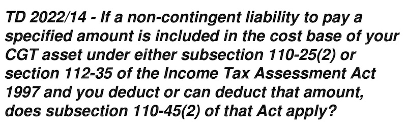 We note the release of the ATO’s Tax Determination (TD) 2022/14.