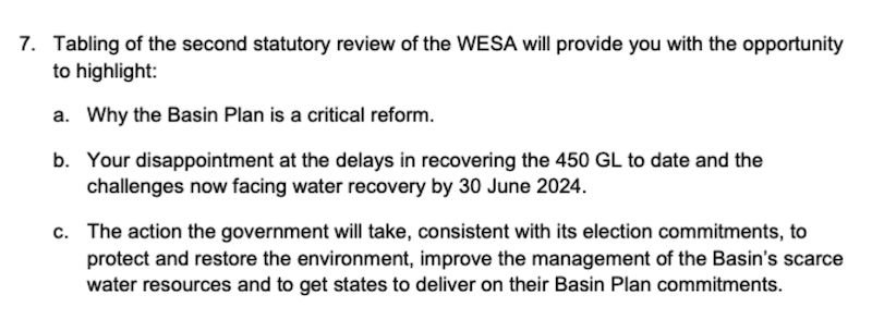 Other ministerial briefs released under FOI have revealed hand written comments that show Plibersek cares. But it’s not enough to just care. She has to deliver the goods – or more correctly, deliver the water.