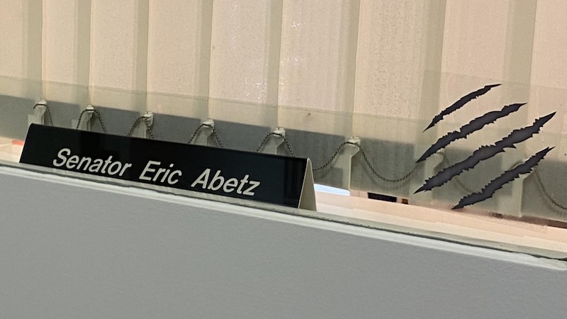 The Wolverine gang roams around Parliament House posting stickers of claw marks on doors to mark their territory.