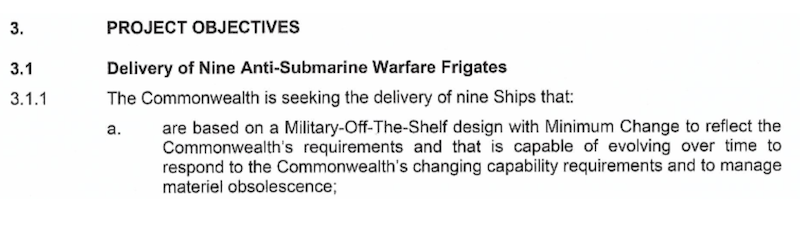 To reduce risk, Defence released a tender calling for a Military-Off-The-Shelf (proven) design with minimum change.