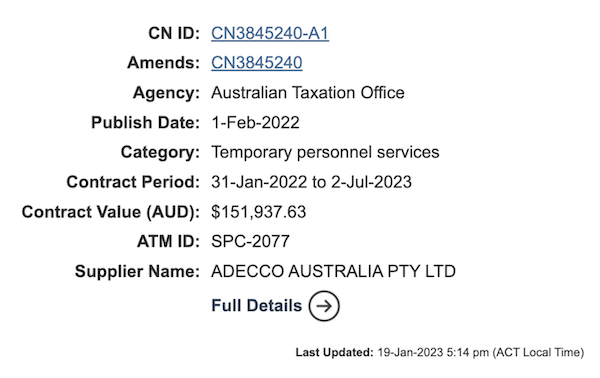 Adecco has significant contracts with the Federal government. Not only does the ATO appear to be doing little about its incomprehensible tax position, they’re actually engaging them for labour hire.