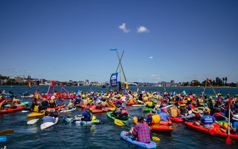 Rising Tide organisers expect thousands to attend of whom hundreds would enter the water in kayaks and other vessels to block the harbour. Last year, a similar 24-hour blockade protest was conducted safely and in cooperation with police, after which 109 people refused to leave the water in an act of peaceful civil disobedience. They were then arrested without incident. Most were later given good behaviour bonds with no conviction recorded.
