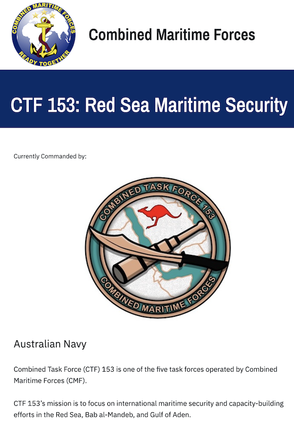 The problem is that disinformation is rife. The Red Sea operation is mostly a secret. MWM put questions to Defence as to Australia’s involvement in the Red Sea task force but no response was forthcoming.