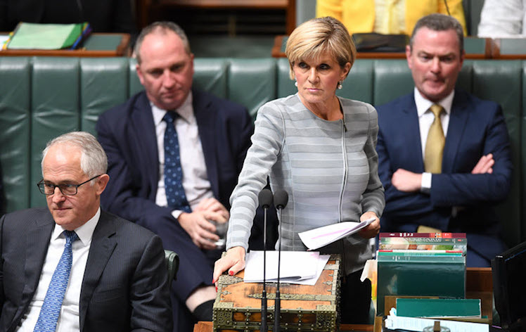 Time and time again this government makes the wrong calls, judgments that end up dramatically escalating its problems. Julie Bishop is the country’s Foreign Minister, but how much respect can she garner in foreign capitals when she makes herself the object of mass ridicule as she’s done this week? How can the government itself be taken seriously when, next time the Prime Minister travels overseas, a bloke who was, in defiance of the constitution, a Kiwi until five minutes ago is going to act for him? And how can the government get any message out about what it’s doing when all voters see in Canberra is chaos and farce?