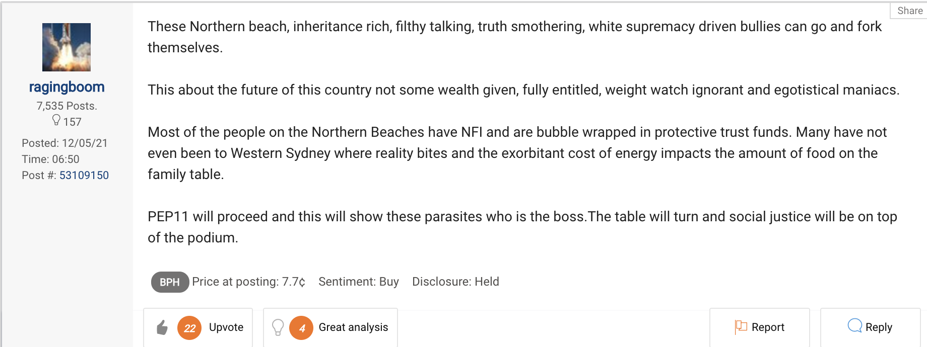 But this is the absurd reality. It is a proposal still under consideration. On the share market, speculators are betting on a ten-fold surge in the share price of driller BPH Energy. “Wooooo Hooooo Go BPH :)$$$$$$,” cry the stock speculators in the chat forums.