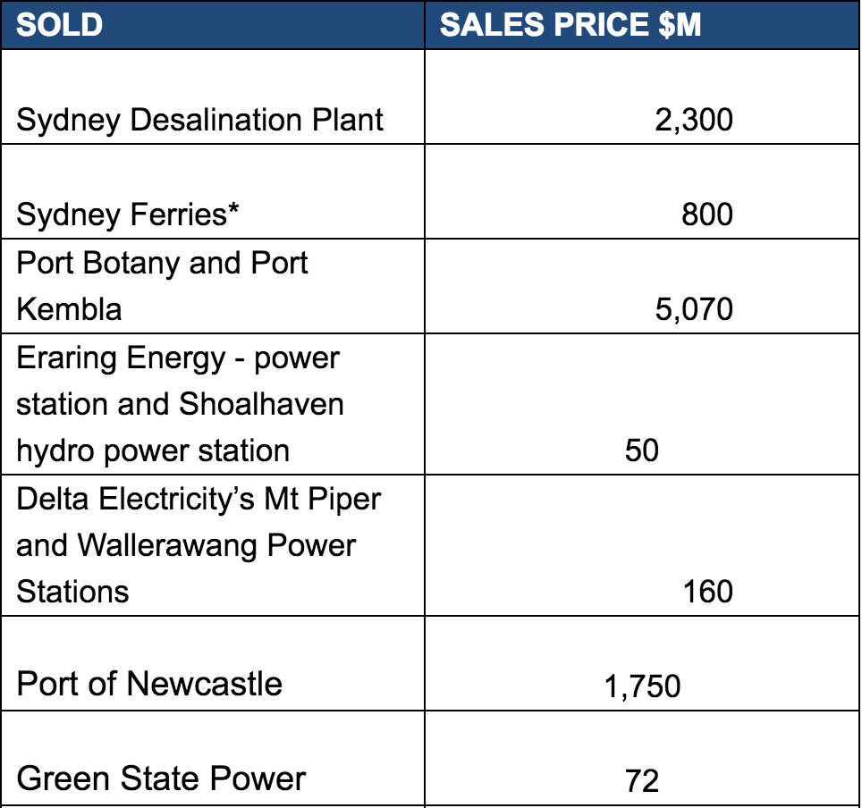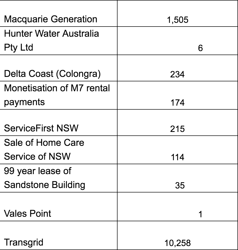 This, and other electricity transmission and distribution companies, used to deliver hundreds of millions of dollars in revenues to the state coffers every year. They were sold for a one-off budget sugar hit and a slather of fees.
