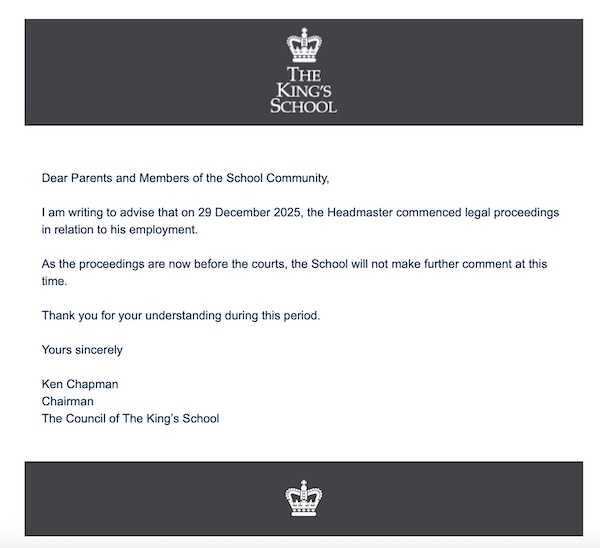 The King’s School “rife with speculation” over Headmaster’s future