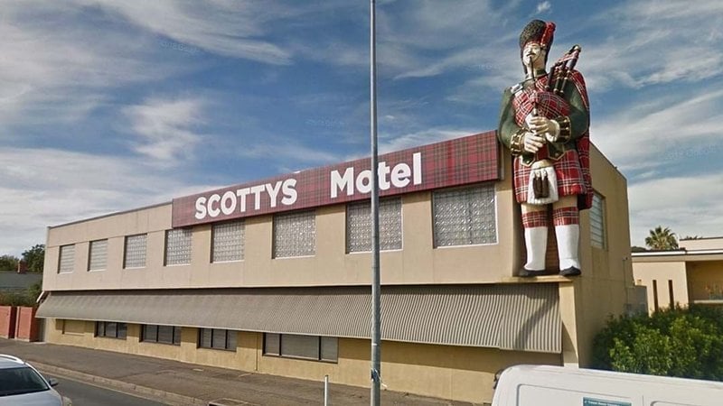 Scotty’s Motel, guarded by its ‘Big Scotsman’, is a much-loved local landmark. Frequented since the ‘60s by travellers, truckies and, yes, the odd amorous couple. What would they, and neighbours in the leafy surrounding suburb of Medindie, think of what it has become?
