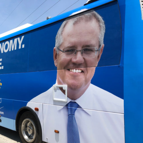Prime Minister Scott Morrison and his big blue bus burnt rubber across Queensland in a four-day tour of marginal seats, but the PM wasn’t actually riding on the bus.