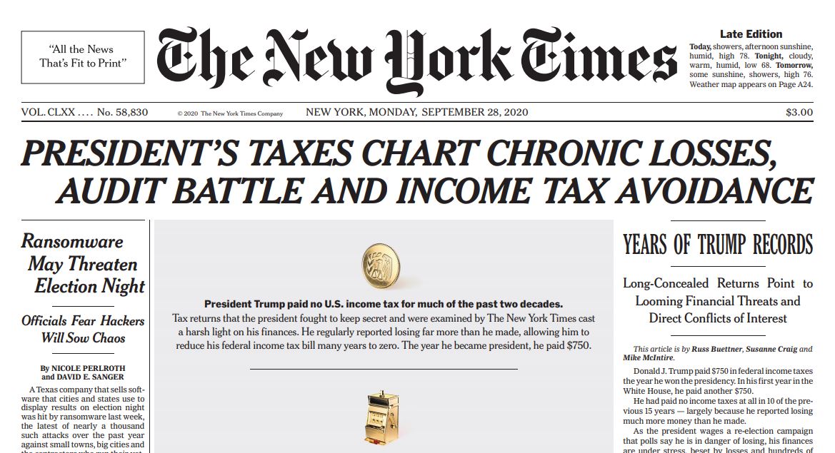 The richly detailed examination of Donald Trump’s taxes in the New York Times carries two crucial but unstated messages. One is about Trump. The other about what chumps we Americans are when it comes to our income taxes.