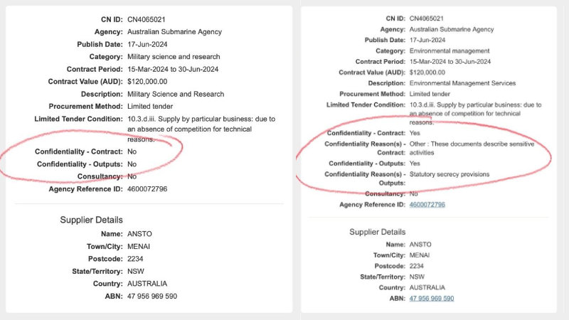 So when I saw a contract that the Australian Submarine Agency had awarded to Australian Nuclear Science and Technology Organisation (ANSTO), and that the contract involved no confidentiality and the outputs of the contract were not confidential, I requested the contract from ANSTO under our freedom of information law, along with the report that was developed under the contract.