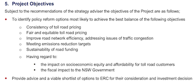 There is something afoot, a Treasury sponsored investigation into future road pricing, so transport boffins have something to talk about, though there is little in the way of detail at this point, albeit this NSW “Steering Committee into Toll Road Pricing, which they claim to be “a detailed review into toll road pricing and relief”, but it seems to stop short of fully exploring Sydney wide road pricing, because it has these vague objectives: