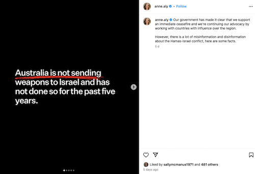 For over three months, members of the Labor Government, including Defence Minister Richard Marles and Foreign Minister Penny Wong, have held the line that “Australia is not sending weapons to Israel and has not done so for the past five years”. This claim by Labor MPs has also been proliferating through a social media campaign allegedly combatting ‘disinformation’.