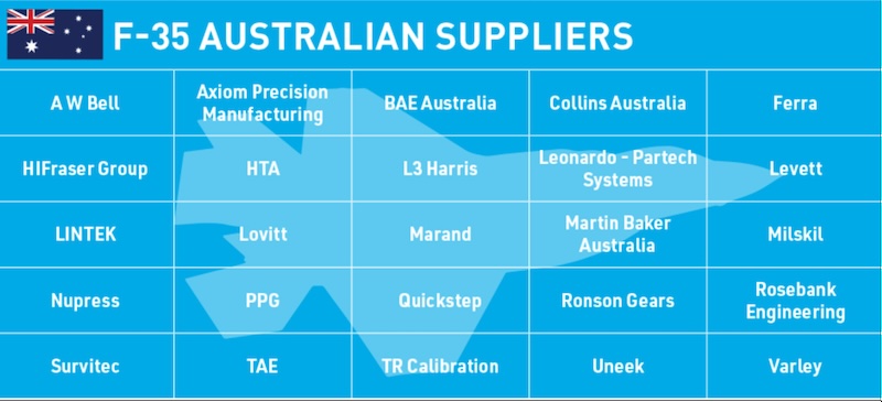 Over 70 Australian companies provide parts and maintenance to the F-35 program.