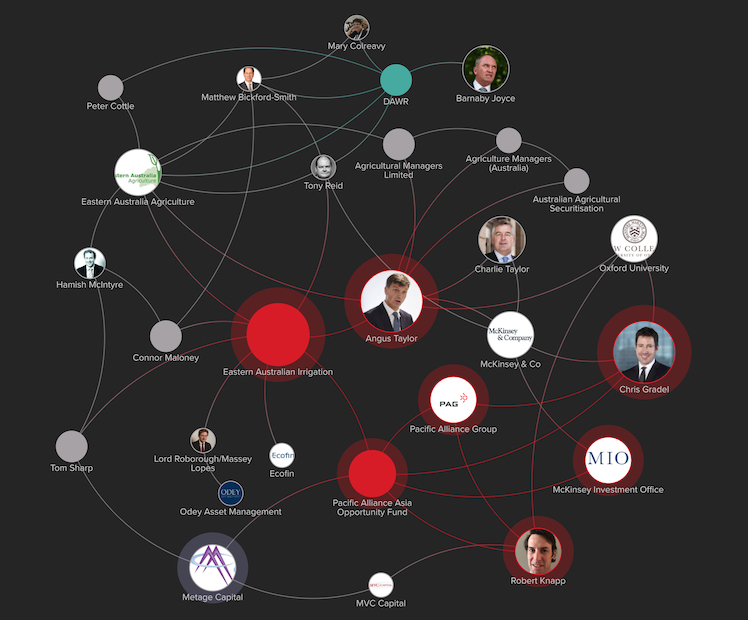 A few others fall into the mix here as well including Connor Maloney who sat as an EAI director with Angus Taylor and who recently featured in the tabloids as enjoying of a multi-million dollar renovation of his Swiss home, and Hamish McIntyre, a former EAA director alongside Angus Taylor and one of Barnaby Joyce’s long-term associates.